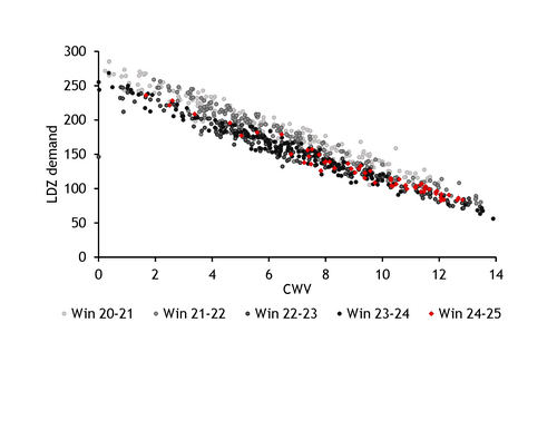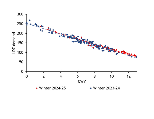 UK LDZ demand vs CWV trendlines