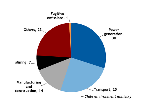 Chile's energy sector accounts for 77pc of the country's GHG emissions. Mining represents 17pc of the energy sector's emissions.