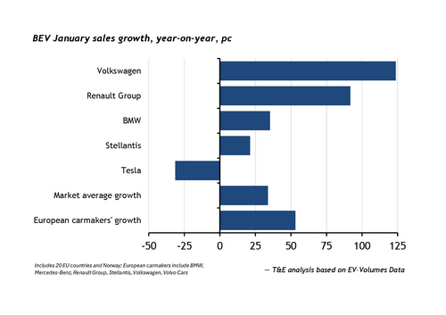Sales from European carmakers specifically rose by more than 50pc on the year (see graph), highlighting the carmakers' ability to match targets, with BEV sales potentially withheld.