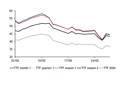Over the same period, Argus' benchmark TTF front-month assessment dropped from a peak of €58.16/MWh on 10 February to €44.39/MWh on 28 February, while other prices further down the curve dropped by similar amounts (see prices graph). This suggests that the shift in investment firms' positions contributed to the drop in prices. A growing sentiment in the market that Russian gas transit through Ukraine could resume, signalling from the European Commission on more flexibility in meeting storage filling targets, and a mild weather outlook across Europe for March, all contributed to the recent drop in European gas prices. Many market participants have pointed towards a desire to take profits over the past few weeks while prices remained elevated and cut risk exposure as unpredictable geopolitical events, particularly regarding the war in Ukraine and US president Trump's tariff policies, have upended many commodity markets.