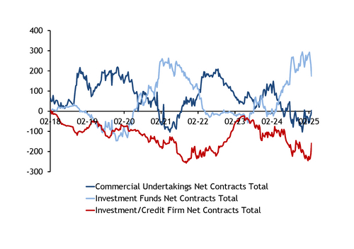 In addition to commercial undertakings moving to a net long position, the other main category of market participant, investment/credit firms, slashed their net short position by 80TWh in these three weeks to end at 159TWh.