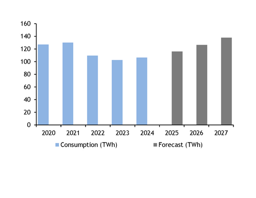 But the operator's grid plan also foresees gas consumption growth of 1pc each year in 2025-27, driven by industrial users in the food, metallurgical and construction sectors.