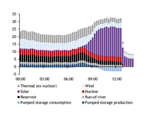 All of Spain's four active nuclear plants stopped generating on Monday, taking 3.4GW of base-load generation off line. Output from solar photovoltaic (PV) installations also dropped sharply, while wind output appeared little affected. Output from hydroelectric dams almost completely halted, while run-of-river sites cut generation by around two-thirds. And demand from pumped storage sites for refilling fell to just above 100MW from around 3GW before the outage.