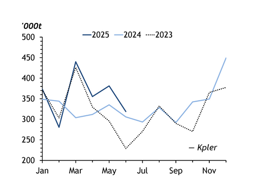 The decline in output means Mexico is becoming more reliant on imports. Pemex and private-sector importers brought in around 196,000 b/d (6.2mn t/yr) in 2024, with Pemex accounting for about 82,000 b/d of this and private-sector firms 114,000 b/d, according to energy ministry data. This trend has remained largely the same in 2025. Seaborne imports to the country stood at 2.15mn t over January-June, up from 1.95mn t a year earlier, Kpler data show. Domestic demand stood at about 200,000 b/d in 2024, energy ministry data show. The ministry expects this to increase slightly until 2037, as those still using more harmful fuels such as firewood move to LPG and as demand for use as autogas grows.