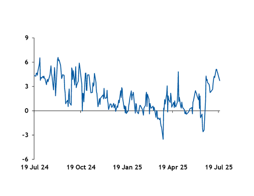 US Gulf coast stocks declined to just 9.7mn bl in the week ending 18 July, according to the US Energy Information Administration (EIA). A backwardation in the US Gulf coast high-sulphur fuel oil (HSFO) market has discouraged storage. On 14–15 July, prompt US Gulf coast HSFO futures traded at a $5.10/bl premium to second-month contracts, the widest spread since mid-October 2024 (see chart).