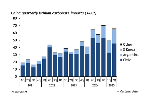 The most actively traded lithium carbonate contract, for November, on the Guangzhou Futures Exchange rose sharply to Yn82,520/t on Tuesday from Yn72,300/t on 7 August and Yn70,840/t on 29 July.