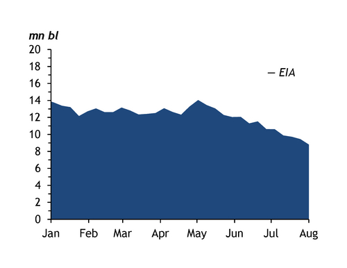HSFO averaged less than a 70¢/bl premium to heavy Canadian crude on the Gulf coast in January-June, which encouraged coking units to consume more of this lighter feedstock. Because of this coker consumption, fuel oil inventories have tightened sharply on the Gulf coast since mid-June. As of the week ended 8 August, total US residual fuel oil inventories reached their third consecutive record low in the US Energy Information Administration's near 43-year historical database. This has raised the product's premium to WCS to more than $3/bl, which has likely caused refiners to reduce using this as a coker feed. US Gulf coast refiners have typically opted to run either HSFO or heavy sour crude depending on the width of this price spread.