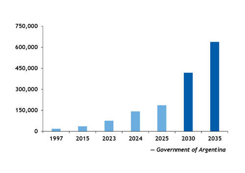 Argentina expects that figure to grow to 418,000t/yr by 2030, reaching 658,000t/yr by 2035, a potential 253pc increase compared to 2025, Lucero said.