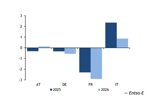 The Italian January forward contract expired at a €2.60/MWh discount to Switzerland, compared with a €8.50/MWh premium for January last year. And the Italian single national price (Pun) index delivered nearly €0.50/MWh below the Swiss spot over 1-31 January 2026. The north zone delivered less than €0.10/MWh below Switzerland.