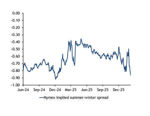 Henry Hub implied seasonal spreads $/mn Btu
