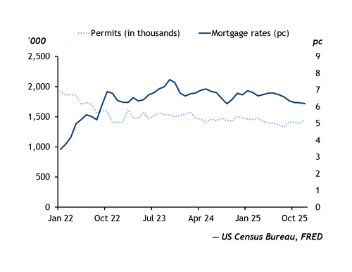 But new-home construction remains subdued, and a marginal decrease from 2025 is still expected. The MBA forecasts a 2pc decline this year in total housing starts from 2025, while the NAR projects a 1pc increase in single-family starts.