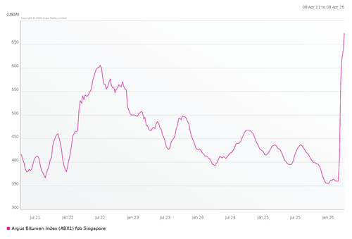 The spread between the two products has narrowed to $17.25/t on 7 April, Argus data show. This shift may incentivise some Singapore-based refiners to raise bitumen output, but exports from Singapore are likely to stay limited in the near term.