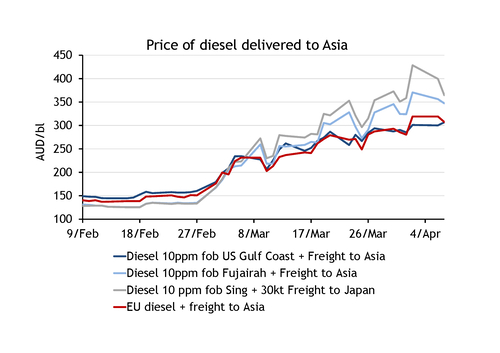 Australian importers have sourced gasoil from the US and Europe since the start of the Iran war to take advantage of lower prices in these markets compared to Asia and in order to lock in supply security.