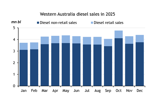 Western Australia diesel sales in 2025 (mn bl)
