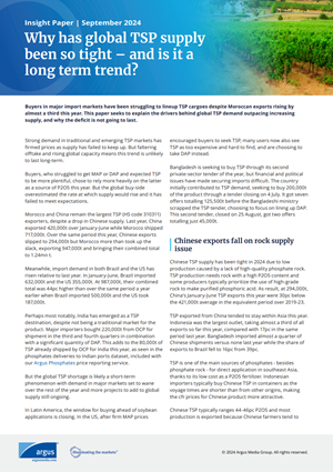 Buyers in major import markets have been struggling to line-up TSP cargoes despite Moroccan exports rising by almost a third this year. This must-read paper addresses this issue, and covers the following topics: