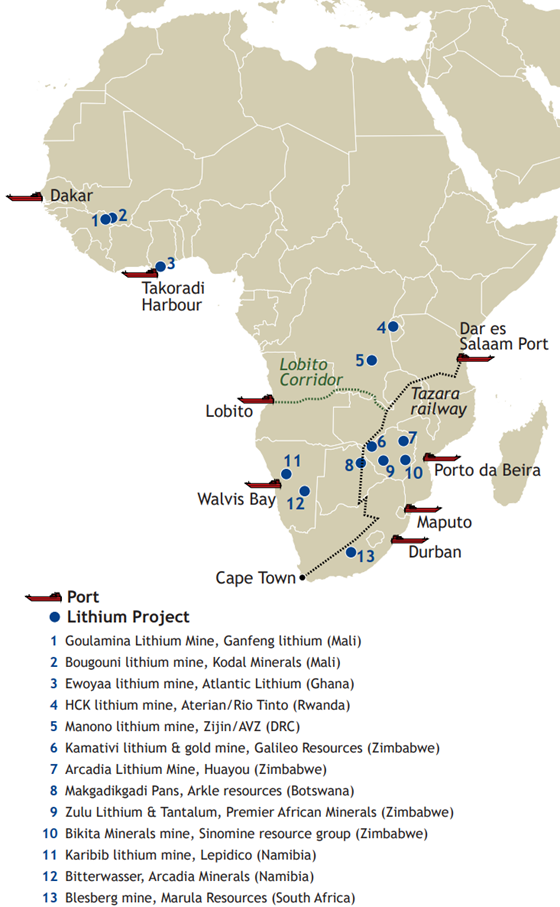 Africa is a major emerging hub for lithium spodumene used to produce battery-grade lithium. Several producers have begun output in recent months in Zimbabwe, the Democratic Republic of Congo, Namibia and South Africa, with new supply chains developed out of central and southern Africa, including the revamped Lobito international corridor and Tazara railways. These have expanded the continent’s role in the global lithium market.