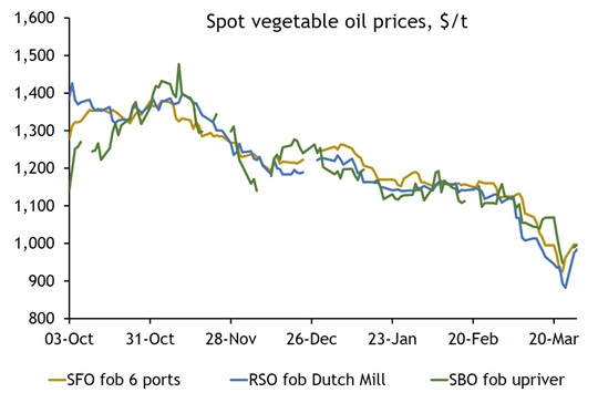 That said, some Indian traders are more pessimistic about the SFO price outlook, indicating that the SFO market should remain under pressure from abundant supply from the Black Sea and Europe. In addition, India is mulling a possible increase in its import duties on vegetable oils in May, which could further weigh on import prices.