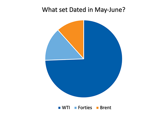 In the Dated market in June, 13 WTI cargoes traded on a delivered Rotterdam basis, compared with just five cargoes of the other five grades combined. And there were 94 bids and offers for delivered WTI in June, against just 35 bids and offers for the other five grades. So the volume of information available to PRAs (Price Reporting Agencies) like Argus in order to determine the benchmark value is some two and half times greater now than before.