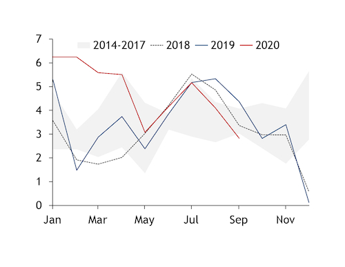 Jan-Aug 2020Jan-Sep 2020Jan-Sep 2019± y-o-y20192018