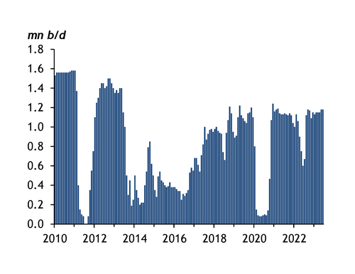 The question now is whether Libya's apparent political stability — always on shaky ground — is about to unravel and what this means for its oil sector. Libya has sustained output at 1.1mn-1.2mn b/d since August and has been haplessly trying to boost capacity to 2mn b/d for years (see graph). The prognosis is not good. A powerful military figure, Khalifa Haftar, is effectively threatening to shut down up to 90pc of the country's oil output unless he gets greater access to Libya's oil revenues. His deadline is 31 August. The latest outages, which would not have happened without his approval, were merely a warning shot.