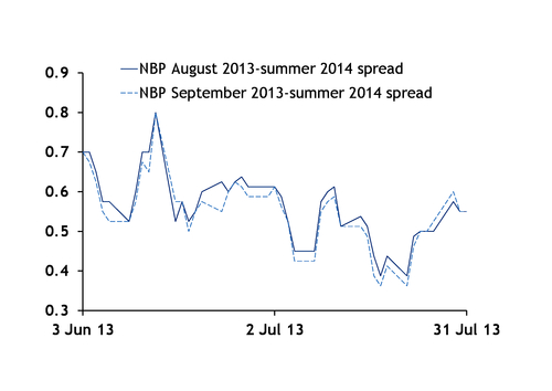 In contrast, Statoil's trading revenues had come under pressure in 2013. The TTF curve had been in backwardation at the time, with the August 2013 contract closing €0.50/MWh above the summer 2014 market on 25 July 2013.