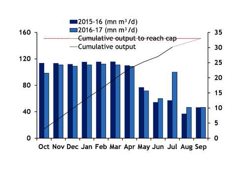 The Norwegian firm would need to reduce output over the next two months just to hit the field's 33bn m³ cap for the 2017-18 gas year. This could mean that even a sharp drop in Troll offtake in August-September from this month's quick output may not result in gas being pushed back into the 2018 summer.