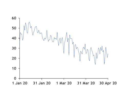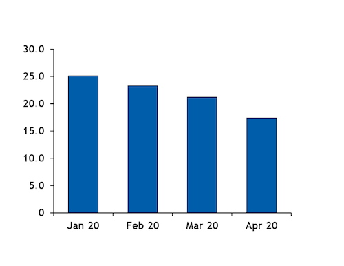 Consumption was reduced by Covid-19 restrictions. The lockdown was in place for all of April, although there were exemptions, particularly in the second half of the month. Italy introduced nationwide restrictions on business activities and the movement of people on 12 March, closing all non-essential industries from 23 March.
