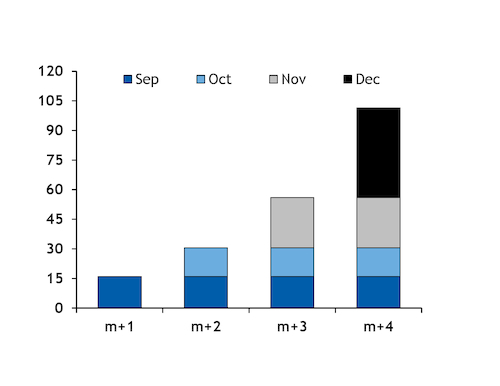 The contango in the ANEA curve may not offer sufficient returns to delay deliveries of August cargoes, with only 52 days of additional costs potentially covered by the August-November spread. But November and December deliveries could offer sufficient returns for September-loaded cargoes.