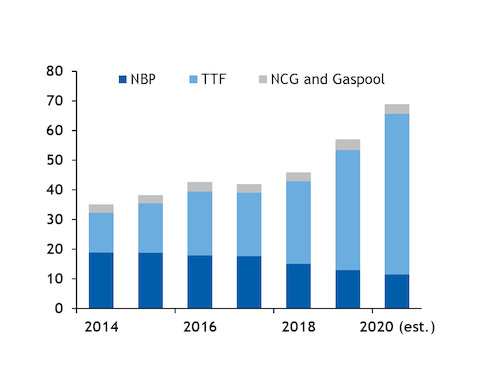 Liquidity rose again at the Netherlands' TTF gas market in June from a year earlier, and also strengthened at Germany's NCG and Gaspool.
