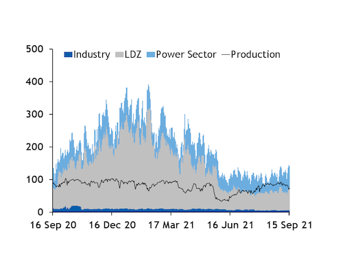 Overall UK gas production averaged 80.3mn m³/d over the period (see graph).