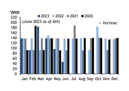 India's ethane imports have been relatively steady in recent years. They reached 1.62mn t in 2022, compared with 1.53mn t in 2021 and 1.57mn t in 2020, Vortexa data show. But the country's expanding ethylene production capacity and domestic consumption will boost this in the coming years. India's ethylene demand is likely to increase to 8.7mn t and polyethylene consumption to 6.9mn t by 2026, Argus calculates.