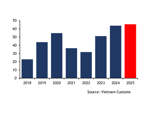 Imports of all types of coal reached 3.62mn t in December 2025, sending the total for the full year to 65.43mn t, according to Vietnamese preliminary customs data. The year's imports surpassed the previous all time high of 63.82mn t in 2024.