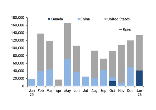 Arbitrage volumes into Europe could also be supported in 2026 by weaker domestic demand in the US, where California's winter pause in diesel intensive agricultural activity is cutting into consumption. Combined with limited US regulatory incentives, buying interest in the US has been muted in recent months and helped open the arbitrage to Europe.