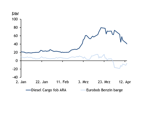 Entsprechend profitierten europäische Raffineriebetreiber im März noch von der besonderen Situation, dass sie vergleichsweise günstig eingekauftes Rohöl zu Produkten wie Diesel oder Kerosin umwandeln konnten, deren Verkaufswert bereits deutlich angestiegen war. BP und Shell haben beispielsweise angekündigt, dass sie angesichts der vorübergehend hohen Raffineriemargen für das erste Quartal 2026 insbesondere im Ölhandel mit außergewöhnlich guten Ergebnissen rechnen.