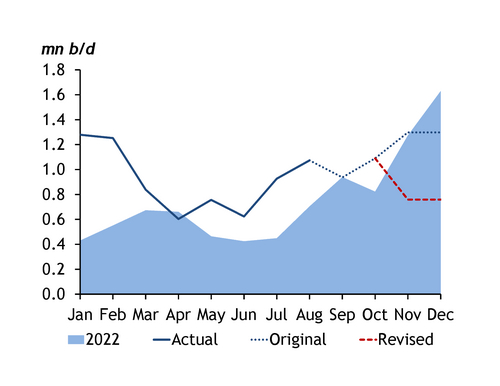 After summoning state-run refiners to discuss the state of the global market on 27 September, economic planning body the NDRC signalled that no more quotas will be forthcoming. China's exports of the three fuels will now be 500,000 b/d lower than expected (see graph). The logic for rejecting requests to boost exports is unclear. Domestic oil demand rises in the autumn, but supplies to meet that have already been allocated and demand has so far fallen short of refiners' hopes. In any case, decisions about quotas are dictated by loftier considerations, officials say, and must be approved by the state council, chaired by premier Li Qiang.