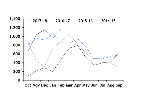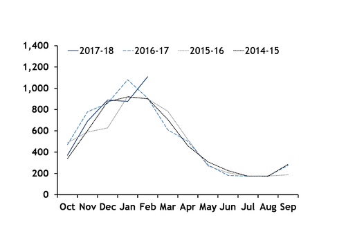 It plans to remove 30,000-50,000 households a year from the gas network by the end of its cabinet period in 2021. This could cut demand for Groningen gas by around 20mn-55mn m³/yr, but this could increase later in the decade as an increasing number of households are switched to other supply sources.