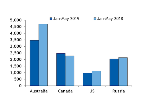 South Korea imported 419,030t of coking coal from Canada in May, up by 73.6pc year on year. The increase in Canadian shipments follows a fall in Canadian coking coal shipments to Europe in April, while Asia-Pacific volumes rose. The country imported 304,728t of coking coal from the US and 504,980t from Russia in the same month, up by 81.4pc and 22.3pc year on year respectively.
