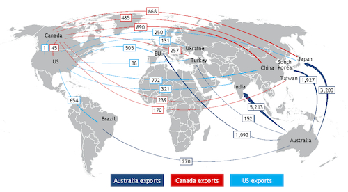 US and Canadian coking coal exports to China and Europe rose in the first quarter of 2021 but lost ground to Australian material in other markets amid further deterioration in Chinese-Australian relations.