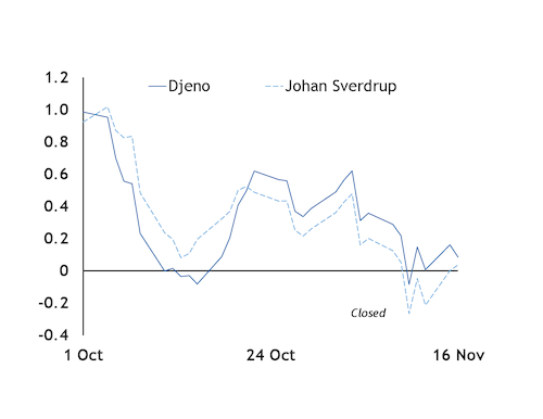 High freight costs, the strength of Ice Brent futures to Dubai swaps — the EFS — and the persistent premium of prompt to forward crude futures contracts are making it far less attractive to sell Johan Sverdrup to China (see graph: Delivered China arbitrage). The resulting strength of Johan Sverdrup premiums has encouraged refiners to shift back towards Brazilian grades. The latter are sweeter and typically have a higher gross product worth but were, for much of this year, snapped up by state-owned firms such as Sinopec.