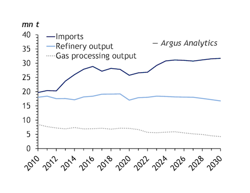 This would represent almost 180,000t of additional demand in Poland. Industrial sector demand in Europe was about 3.4mn t last year. If this was to grow by a fifth, let alone doubling, the problem would shift to LPG supplies rather than natural gas. High gas prices have slashed European LPG output, from the upstream North Sea fields and refineries, by 20-30pc. The region is already dependent on imports and is becoming more so — net imports are due to reach almost 12.5mn t this year and maybe 15mn t in 2023, from 11mn t in 2021 and just 7mn t in 2010.