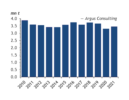Flushing and AGT can accept VLGCs and distribute LPG downstream on smaller barges, railcars and trucks, while ATPC can take smaller vessels and send volumes inland by rail. The terminals took in 2.21mn t last year, up from 1.85mn t in 2020, Vortexa data show. But the capacity to bring in more imports and distribute these is limited. Other terminals can absorb more, including distributor SHV's Karlshamn terminal in Sweden, which can take VLGCs. Brunsbuttel in Germany can take midsized gas carriers. But the tonnes still need to move inland through a logistics network strained by Covid-19, low Rhine river levels and sanctions on Russia. Transport infrastructure is limited by capacity that cannot be expanded quickly.