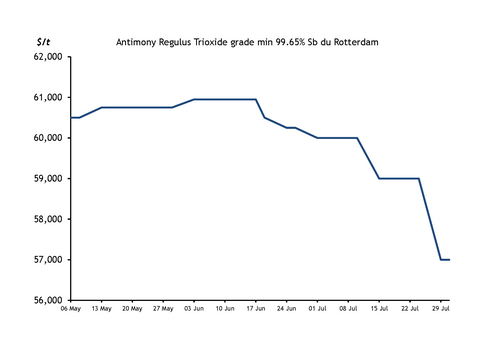 The announcement comes a day after China's Weiying New Material started building a project with a capacity of 10,000 t/yr metal content of antimony products in Shaoguan city of Guangdong province.