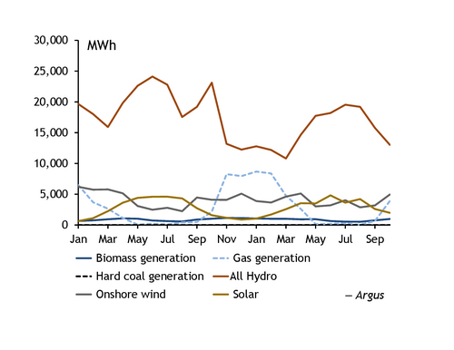 And gas supply was also strong enough to fill Austrian storage sites ahead of winter. Stocks had reached 84.92pc of capacity on 1 October, down from 92.69pc a year earlier, but above the 82.59pc EU average.