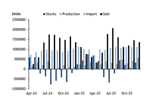 Sales were broadly steady at 1.36mn t, inching down by less than 1pc from December 2024 at just below 1.36mn t.