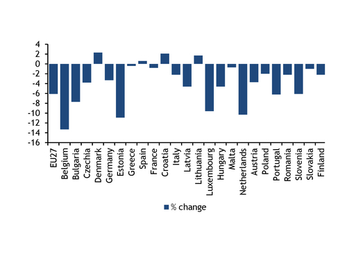 Dutch manufacturing output has fallen on the year in every month so far in 2023, but the 10.3pc decline in September was the steepest since April's 12pc. The country's gas-intensive chemicals and refining sectors have consistently struggled this year.