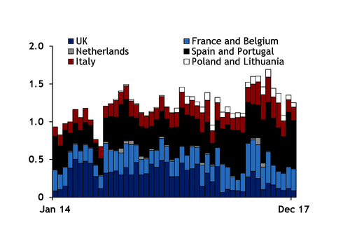 Sendout from France's southern Fos-sur-Mer terminals had also been particularly low in December 2016 because of a halt to loadings at Algeria's Skikda export terminal.