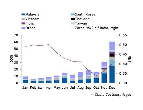 India was the fifth largest supplier of alloy to China in November and December. Malaysia was the largest, followed by South Korea, Vietnam and Thailand.
