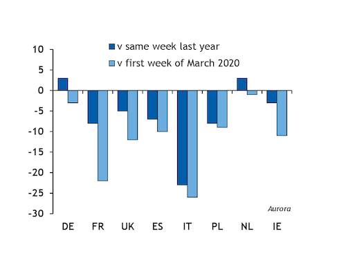 The decline in other European countries has been far less pronounced so far (see chart).