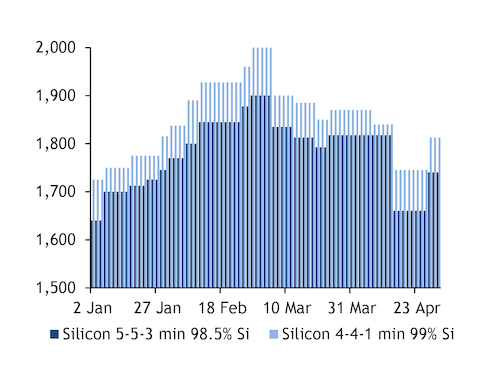 European silicon metal prices rose sharply this week as some consumers returned, but market participants are warning that the latest gains might not be sustainable as regional demand still faces multiple headwinds and is only likely to recover at a gradual pace as lockdown measures ease.