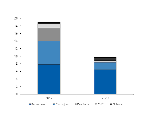 Cerrejon was the main driver of the contraction in Colombian production, accounting for nearly half of the total drop in national output.